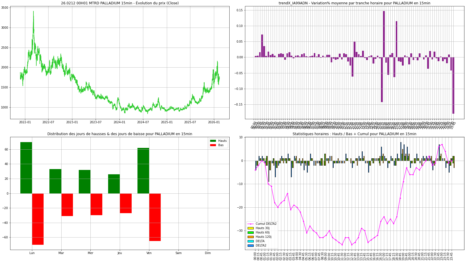 En pratique, vous apprenez à relier nos indicateurs macro (risk-on / risk-off), le sentiment de marché et les corrélations pour bâtir un plan clair (scalping, day trading, swing) et cadrer vos prévisions sur chaque actif. A ce niveau, le top du top sont les graphiques temps réel de notre IA, par exemple ici pour les Prédictions OR ou les Prédictions BITCOIN ... Sans oublier les prévisions par calculs en deep-learning de nos reseaux neuronaux qui prédisaient dès juin 2025 un GOLD à 4500€ fin 2025 : prediction LSTM GOLD à découvrir ici