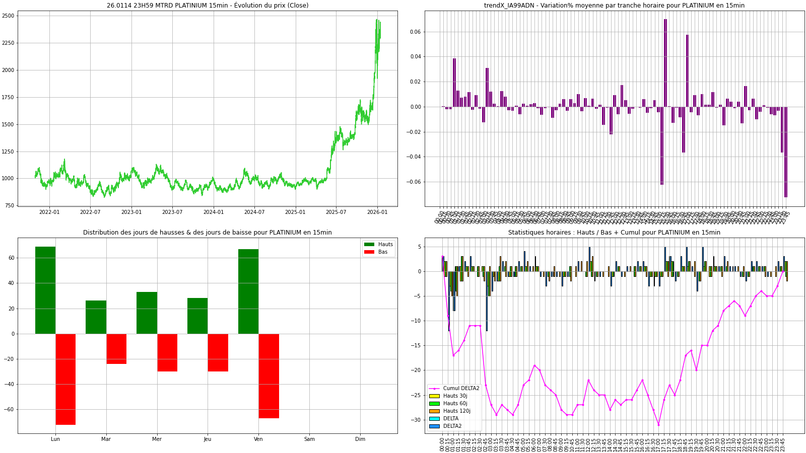 En croisant les catégories de marchés, les corrélations et le sentiment, vous disposez d'une base rigoureuse issue d'un apprentissage sur des millions de données pour repérer plus tôt les phases de retournement et les opportunités, tout en gardant une gestion du risque stricte (voir Les Règles D'Or).